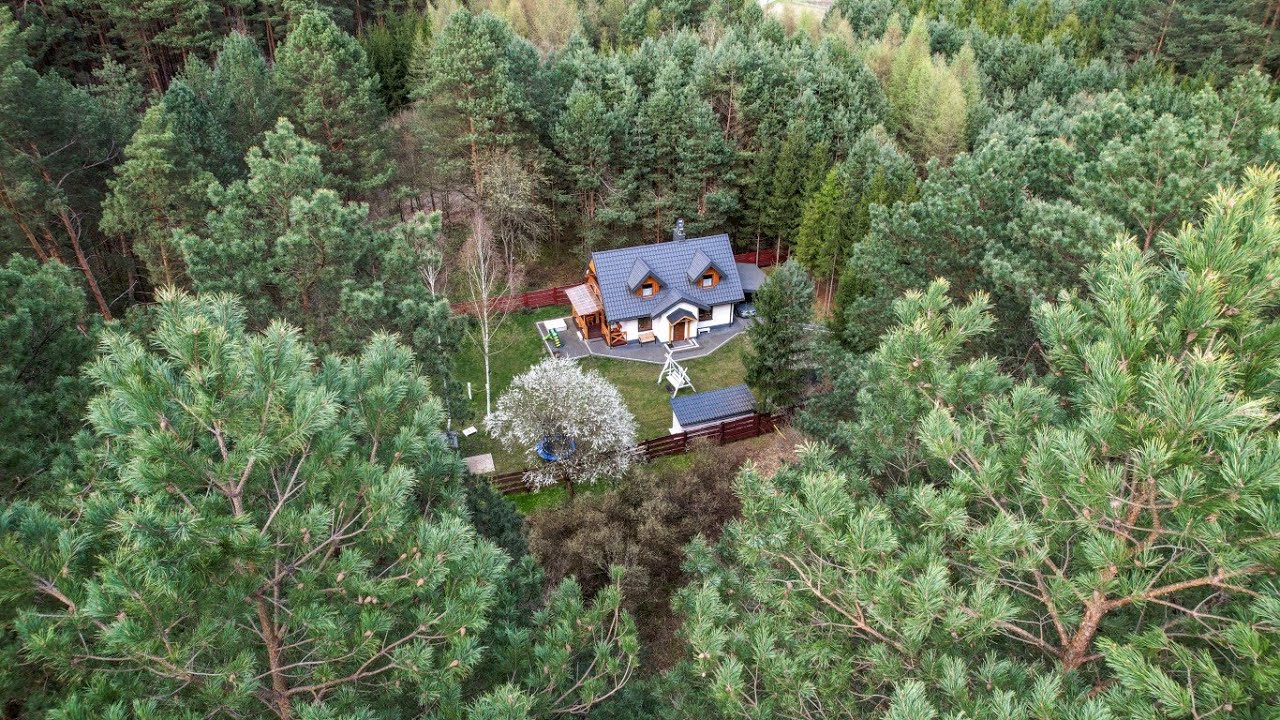 Domek w lesie jest idealny przede wszystkim do rodzinnego wypoczynku lub na romantyczne chwile we dwoje. Goście mają do dyspozycji cały dom w o powierzchni ok 90m2 wraz z przyległą do niej 12 arową działką. Domek jest piętrowy z przeznaczeniem na komfortowy wypoczynek dla maksymalnie 6 osób. Na parterze mieszczą się: salon, spełniająca wszelkie standardy łazienka, w pełni wyposażona kuchnia i przestronny zadaszony taras, na piętrze: dwie sypialnie oraz balkon. W domku są łącznie cztery łóżka (w tym trzy małżeńskie). Domek został wybudowany z myślą o rodzinach z dziećmi i nie jest wynajmowany na imprezy okolicznościowe typu wieczory kawalerskie, panieńskie itp. – młodzieży grzecznie dziękujemy.